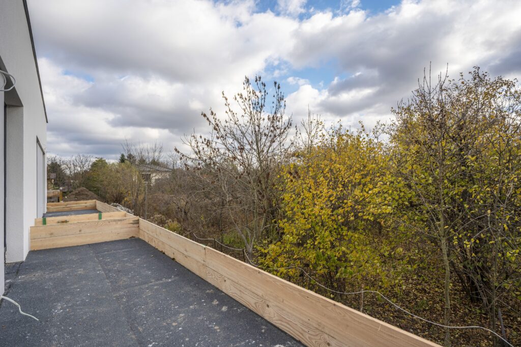 Ostatnie szlify, czyli zamonotwane daszki nad drzwiami wejściowymi, ostatni etap prac na podjeździe oraz montowanie balustrad na balkonach 🙂